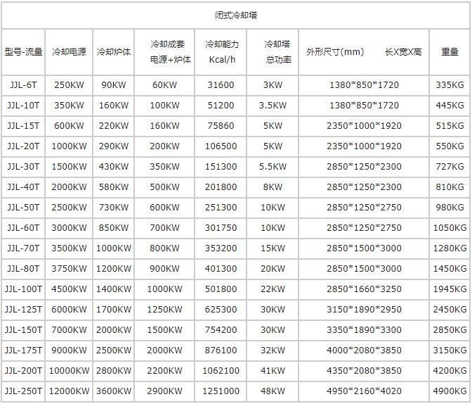 閉式冷卻塔的機芯全部采用換熱效率高的紫銅盤管,讓工作流體(純凈水或其他液體)在其管路中流過,通過風(fēng)機跟空氣進(jìn)行自然的熱交換,一次性完成。即節(jié)能環(huán)保、被冷卻管路又潔凈暢通。在用戶現(xiàn)場只需接上進(jìn)出水口,通上電源就可長時間運行,為現(xiàn)代工業(yè)用冷卻又增加一個高端選擇。